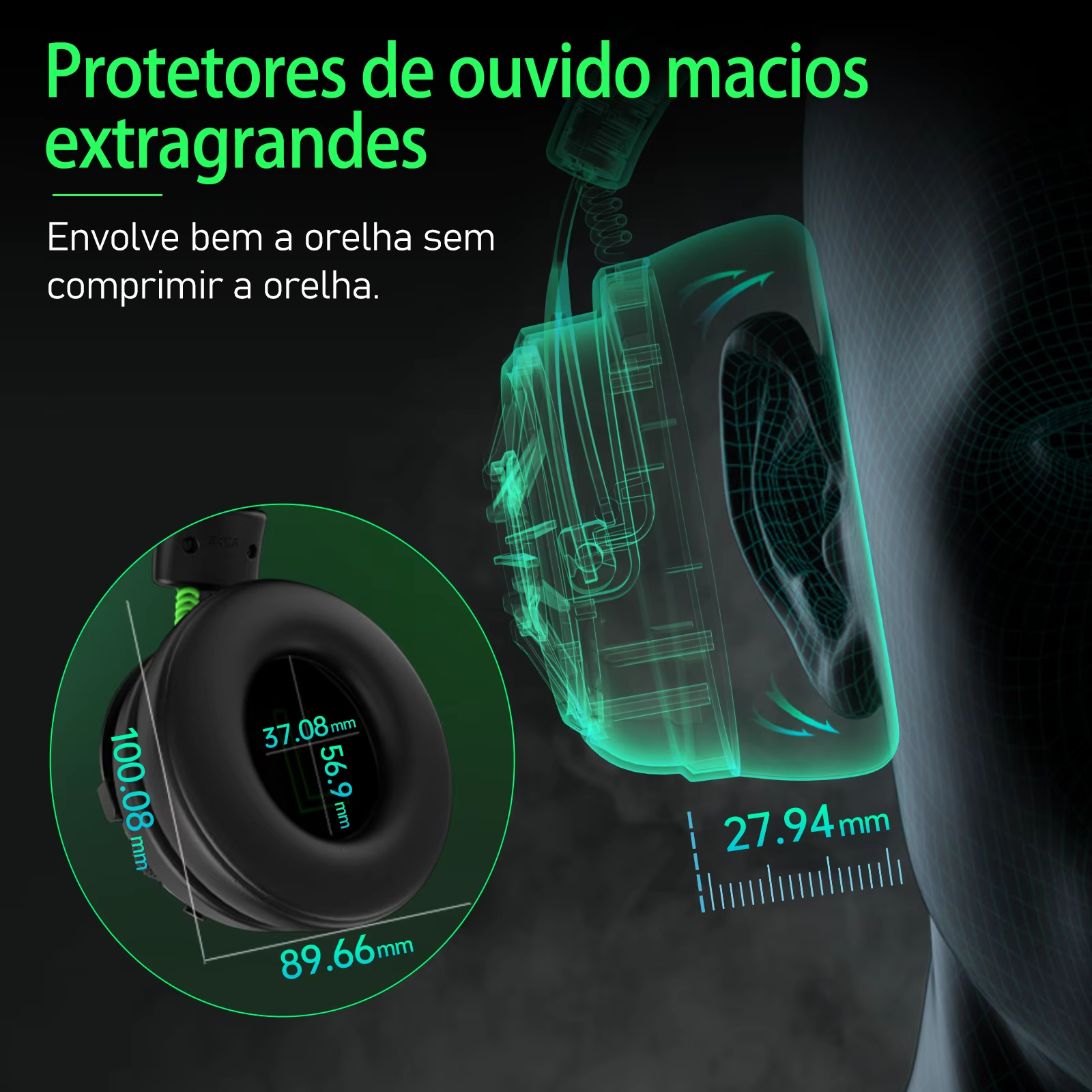 As almofadas em espuma de memória se adaptam ao formato das orelhas, reduzindo a pressão e evitando desconforto durante longas sessões. O design ergonômico distribui o peso de forma equilibrada, tornando o uso muito mais agradável.
